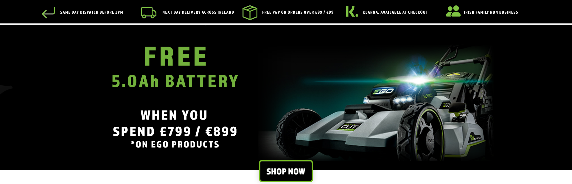 Get next day delivery on orders to the North and South of Ireland if order is placed before 2PM.