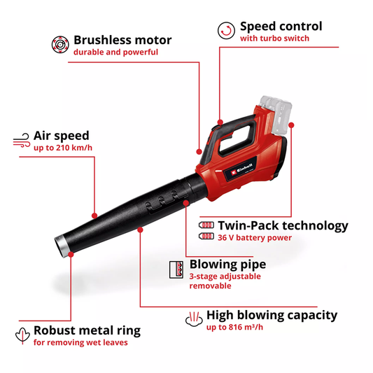 Einhell GP-LB 36/230 Li E BL-Solo PXC 36V Cordless Professional Brushless Leaf Blower Kit 3433650