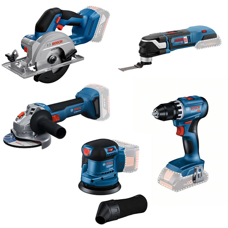 Bosch 18V 5pc Body Only Bundle (Multi Tool, Combi Drill, Circular Saw, Sander, Angle Grinder)