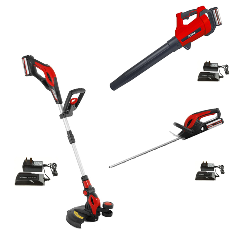 Cobra 3pc Bundle (Grass Trimmer, Hedge Trimmer, Leaf Blower, 3x 2.0Ah Batteries, 3x Chargers)