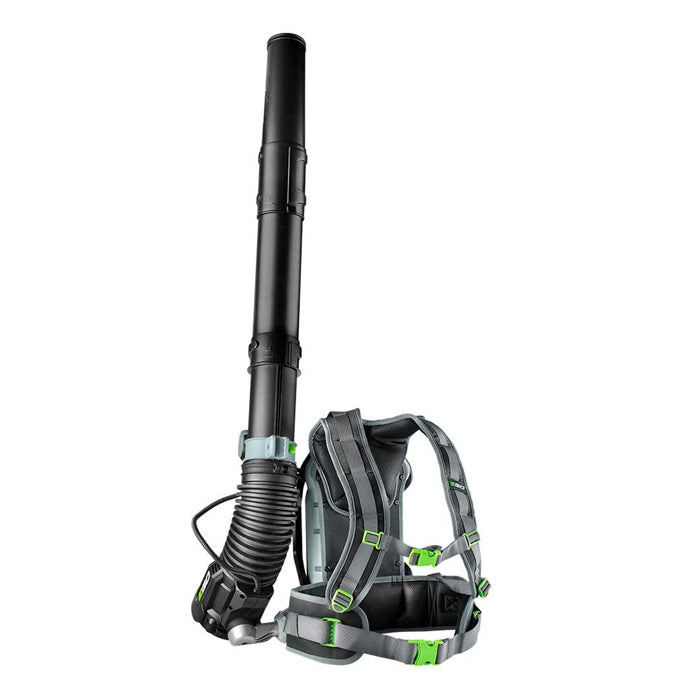 The EGO LB6002E Power+ 56V cordless backpack leaf blower is a high-powered backpack garden blower that features a state-of-the-art brushless motor for high air volume and speed, while the flexible bellows tube and comfortable harness system make the blower both manoeuvrable and easy to use. Power is efficiently managed via the variable speed trigger and power setting switch. The LB6002E is also compatible with all EGO batteries.