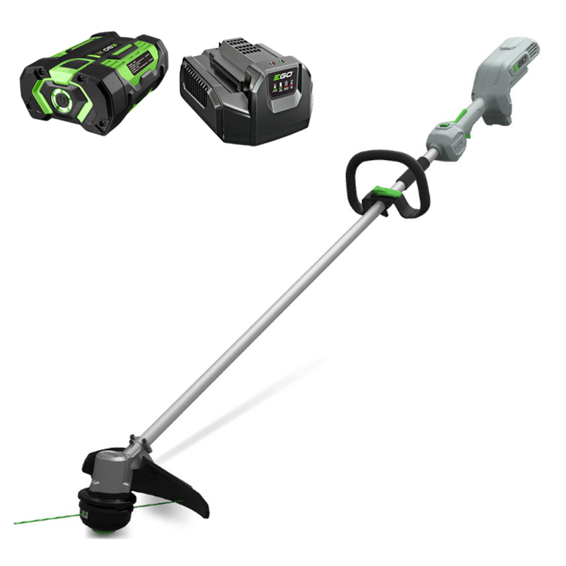 Armed with a 2.4mm nylon twist line, the EGO 38CM GRASS TRIMMER KIT is specifically engineered to be rugged yet user-friendly. A guard has been added to shield the operator from flying debris, and a single-shoulder strap has been provided to ensure comfort. The 2.5Ah battery provides up to 30 minutes of run-time per full charge, and the included standard charger needs only 50 minutes to restore the battery.