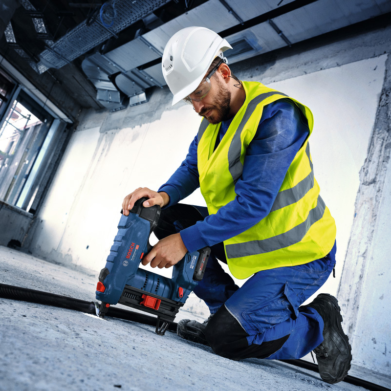 Fastening your cable and conduits on tough materials like concrete and steel has to be easy, efficient, and intuitive. The GNB 18V-40 Professional helps you to get this job done. It is driven by our powerful Brushless motor technology and is part of the Bosch Professional 18V System. All you need is one ProCORE18V battery and you are good to go – no additional gas cartridges necessary. We developed a reliable fastening system that includes both tool, nails and cable fixing elements. This allows you to fully focus on your job. The certified galvanised carbon steel nails ensure lasting durability in concrete and steel. We offer an array of nails ranging from 16 mm to 40 mm for concrete, and 13 mm to 19 mm for steel applications. Tool and nails have been tested and certified according to ETA or ICC.