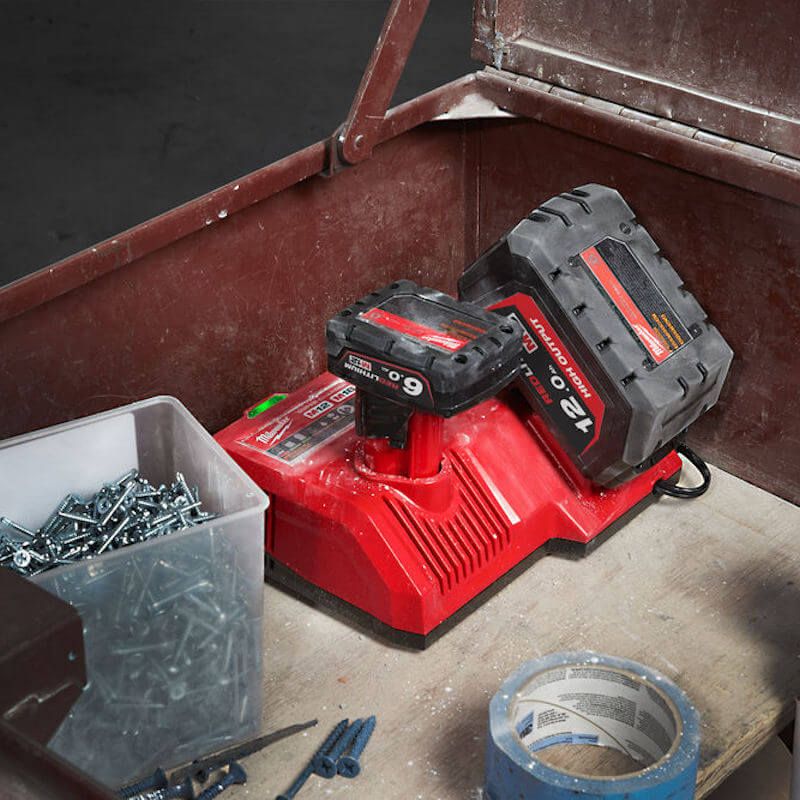Charges REDLITHIUM™ HIGH OUTPUT™ batteries up to 4x faster vs standard charger meaning reduced downtime and maximising productivity. Fast charge with 13.5 Ah Amps max.