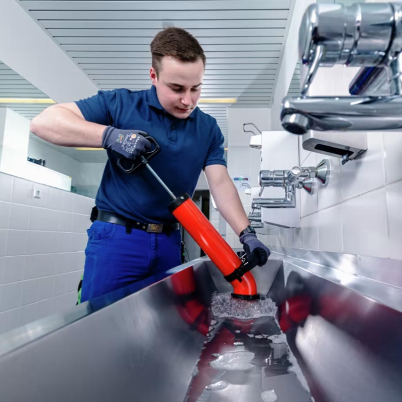 The Rothenberger Ropump Super Plus with Short & Long Adaptor 072070X represents professional-grade plumbing technology designed for efficient blockage removal. This versatile tool employs a powerful suction/pressure principle to quickly clear obstructions in connecting pipes of washbasins, sinks, bathtubs, and toilets.